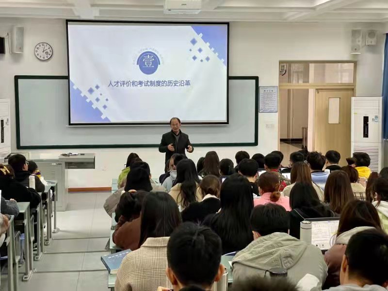 校外导师、四川省人力资源和社会保障厅属事业单位人事人才考试测评基地李国顺主任,在光华校区明德楼112教室为统计学子作了以“我国的人才评级和考试制度”为主题的实务课报告。