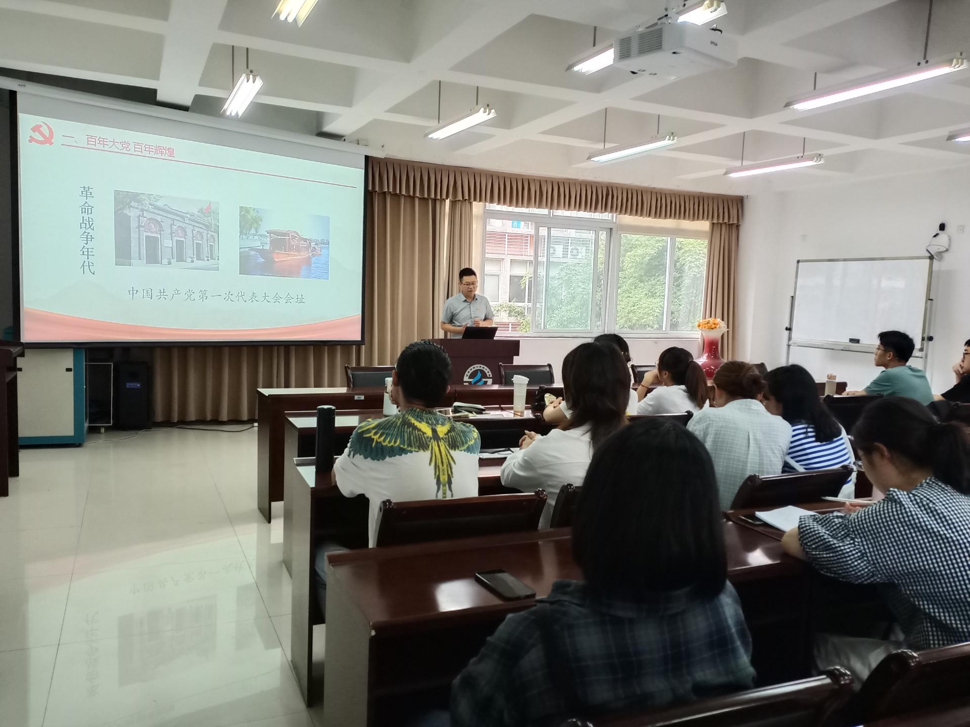 黄海波书记以中国共产党成立这一开天辟地的历史事件为起点,回顾了一百年来中国共产党领导带领全国各族人民艰苦奋斗、不畏牺牲,创立新中国、建立和发展社会主义制度、进行改革开放等光荣历程,并从经济发展、社会生活、生态环境、科技创新等多个方面总结了取得的辉煌成就。最后,黄海波书记强调,作为身处盛世的年轻一代,大学生应该爱民爱国、锤炼品德、勇于创新、实学实干,争作时代新人,为实现中华民族伟大复兴中国梦而奋斗。