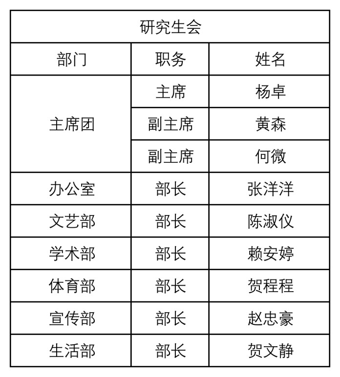 经过自主报名、资格确认及面试等环节,根据参选人考核结果并综合平时表现,报经分党委审核,现将2021-2022学年体育博彩平台推荐 研究生会主要学生干部拟录用结果予以公示: