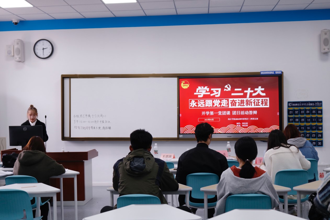 2023年4月4日开展2022-2023学年第二学期“学习二十大、永远跟党走、奋进新征程”团日活动院级答辩,会场设置在经世楼,参会人员有体育博彩平台推荐