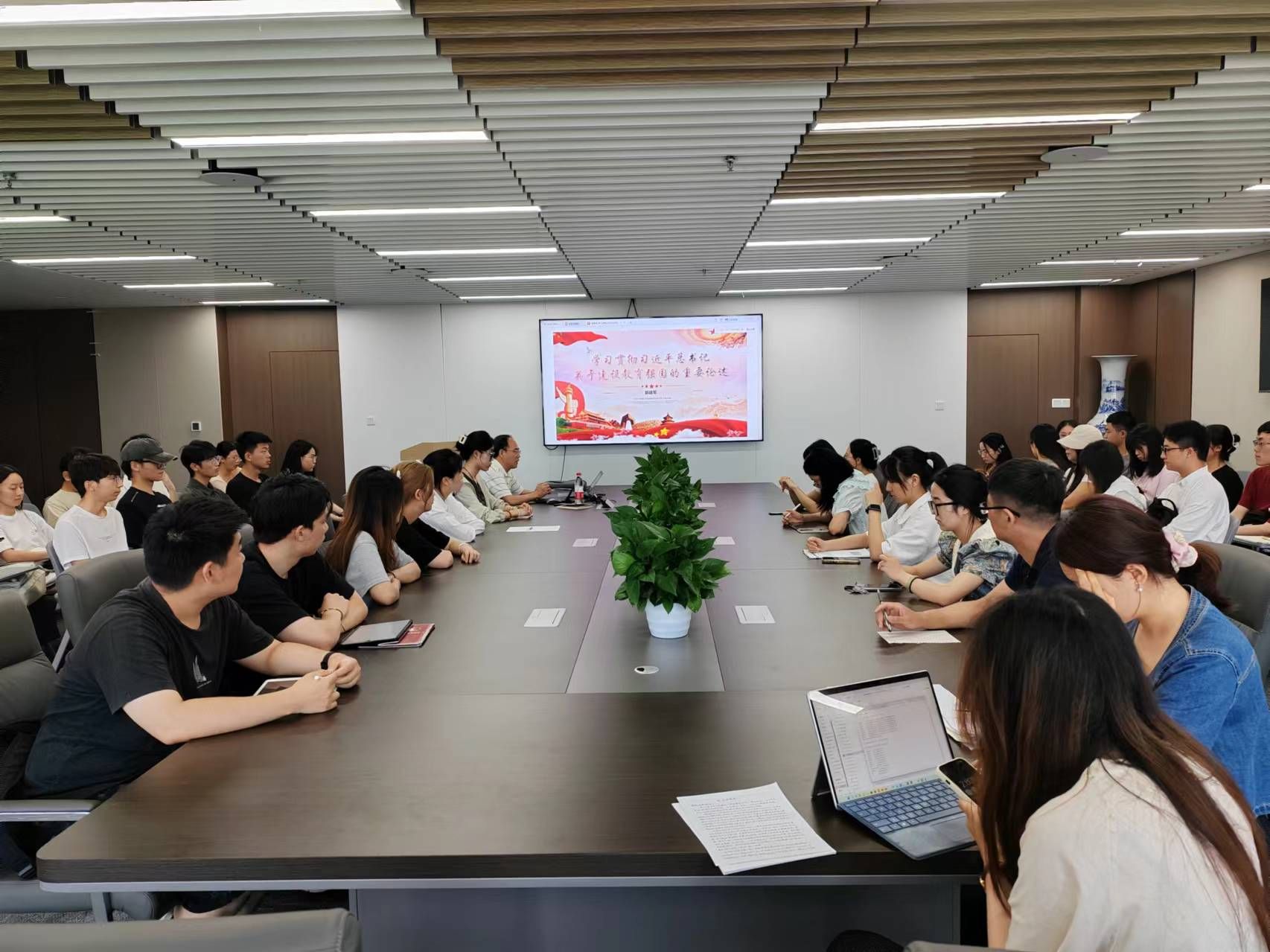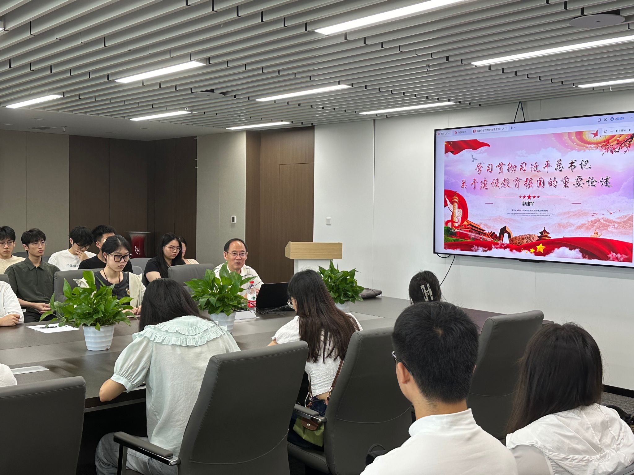 本科生第一、二党支部,研究生第三党支部共50余人在诚正楼13楼会议室参加了此次课程。