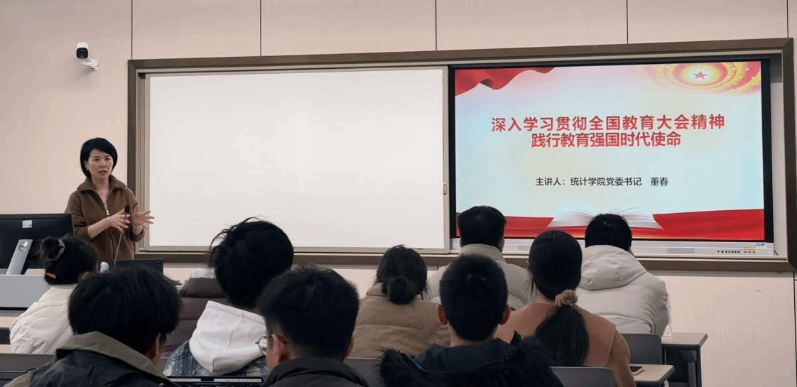 董春强调,全国教育大会是在以中国式现代化全面推进强国建设、民族复兴伟业的关键时期,召开的一次具有里程碑意义的重要会议。培养什么人、怎样培养人、为谁培养人是教育的根本问题,要牢牢把握教育的政治属性、人民属性、战略属性,深刻理解教育强国的科学内涵,正确处理好教育的五个重大关系。她重点解析了习近平总书记提出的“六个力”:思政引领力确保教育政治方向正确;人才竞争力强调培养拔尖创新人才;科技支撑力推动教育现代化转型;民生保障力关注教育公平与质量;社会协调力促进教育与社会深度融合;国际影响力展现中国教育的全球视野,并特别指出我们作为财经类院校,更应注重金融创新,以金融科技创新为我国关键核心技术攻关提供服务与保障。