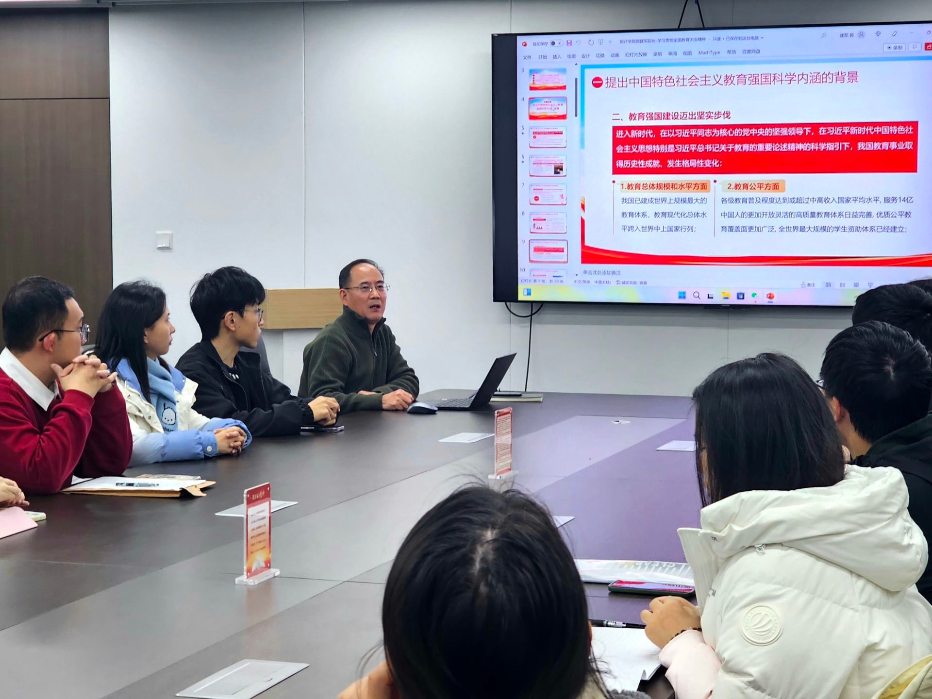 学科建设和发展着重讲解“六力”的科学内涵:第一,“六力”相互依存、相互促进,共同推动教育强国建设的全面发展,其实质与教育的政治属性、战略属性、人民属性同源共流;第二,思政引领力和国际影响力直接体现教育的政治属性,战略属性在人才竞争力与科技支撑力方面得以充分彰显,民生保障力与社会协同力则充分反映了教育的人民属性和以人民为中心的发展理念。最后,郭院长指出,未来我们需要持续深化教育综合改革,强化“六力”建设,以教育之力夯实国家之强,为实现民族复兴伟业奠定坚实基础。