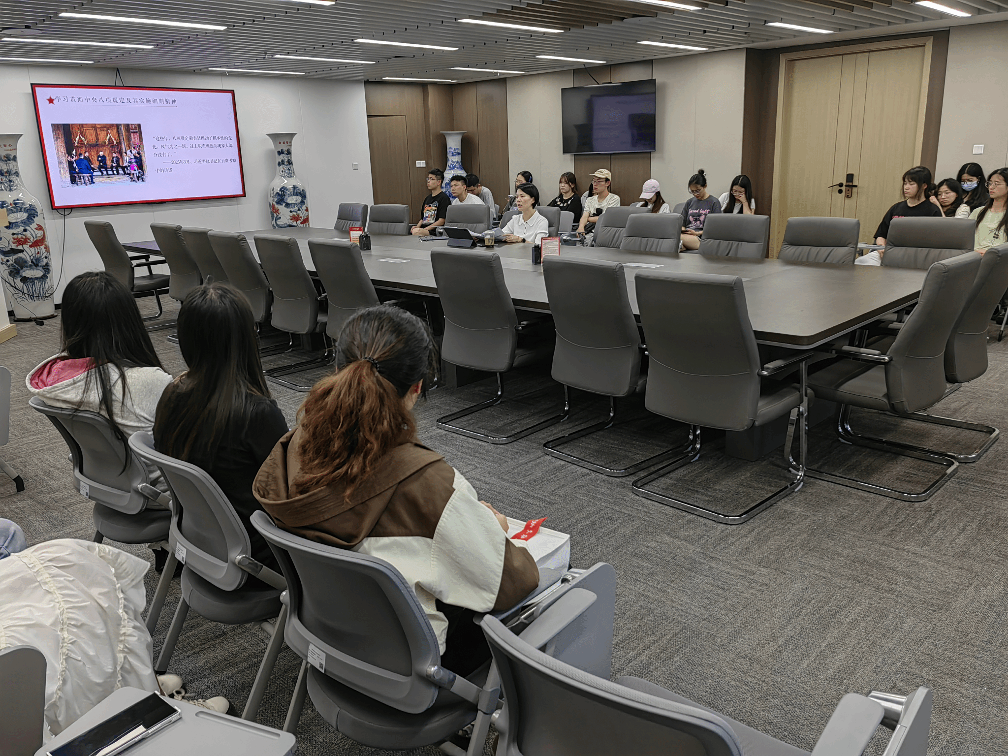 董春围绕“严守纪律规矩,永葆党员本色”主题,结合中央八项规定精神,重点强调了作风建设的重要性。她指出,作风问题是关系党的形象和生命力的根本问题,毕业生党员即将步入社会,要筑牢思想防线,时刻以党员标准严格要求自己。“中央八项规定实施以来,党风政风为之一新,但作风建设永远在路上。”董春要求全体毕业生党员深刻领会八项规定精神的内涵,将其作为职业生涯的行为准则,始终保持清醒头脑,抵制不良风气,做到清正廉洁、务实担当。