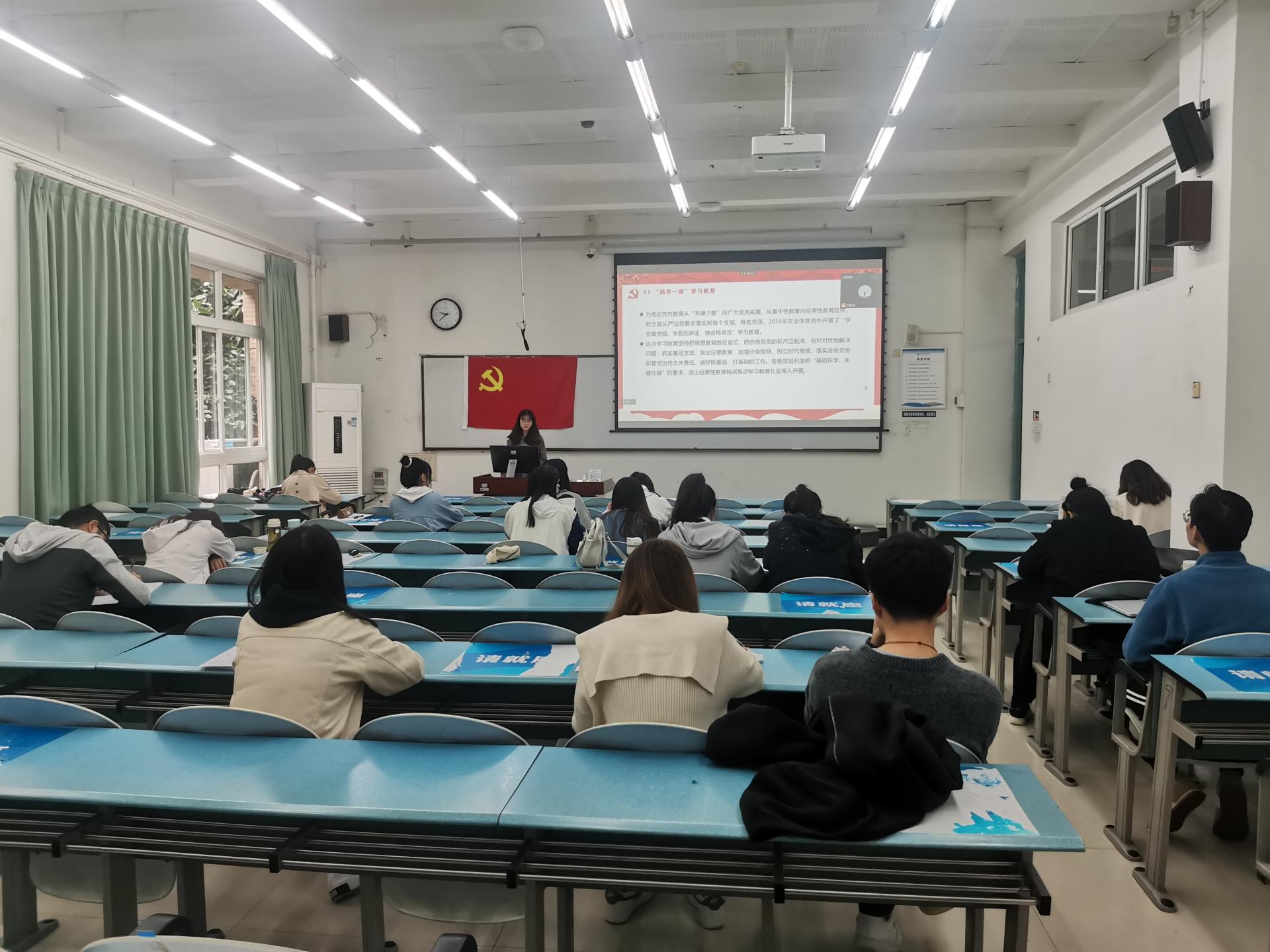 研究生第三党支部在H106教室开展“学习《中国共产党组织建设一百年》”主题党日活动。活动由支部书记杨璐衣主持,支部党员参加。